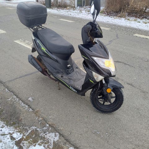Stort set som ny ! Fik Aldrig kørt på den rigtigt. Har stået i garage alle årene, vog er fra 2017 men har kun kørt 734 km . Når du ser den ved du den er ny. med skivelås og kraftig kæde og styrthjelm Har fået årlig service i perioden. Der skal dog nyt batteri i, men det ka vi tale om.