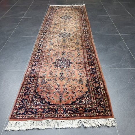 Indien Sarouk tæppe, 240 cm × 82 cm, uld på bomuld, i god stand. Klik på den blå "gå til varen" knap, for at købe eller byde på denne vare. Den samlede pris vil blive vist inden du afgiver dit bud.
