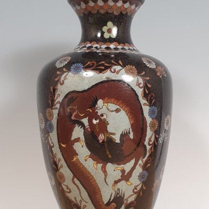 Sjælden stor japansk cloisonné-vase fra det 19. århundrede (Meiji-æraen).