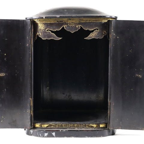 Trægenstand fra Japan fra Edo-perioden (ca. 1700–1750), et forgyldt siddende bodhisattva med målene 45 cm høj, 35 cm bred og 32,5 cm dyb, i god stand med nogle brugsspor og pletter som følge af alder. Klik på den blå "gå til varen" knap, for at købe eller byde på denne vare. Den samlede pris vil blive vist inden du afgiver dit bud.