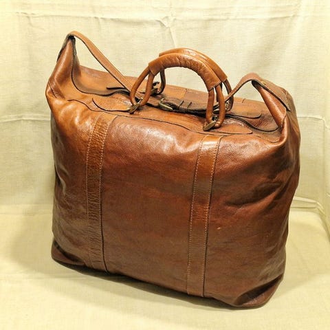 Italiensk læge-/doktor tas i ægte læder, brun, 23 cm høj, 36 cm bred, 20 cm dyb, sjældent brugt med let slitage, nøgle inkluderet. Klik på den blå "gå til varen" knap, for at købe eller byde på denne vare. Den samlede pris vil blive vist inden du afgiver dit bud.