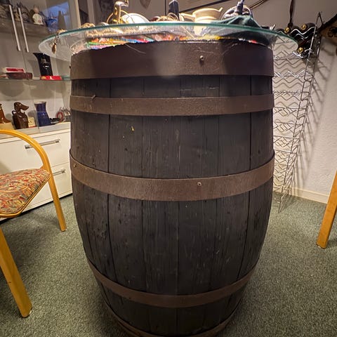 Charmant, bijzonder wijn / whiskey tafeltje met fraaie originele inleg.
