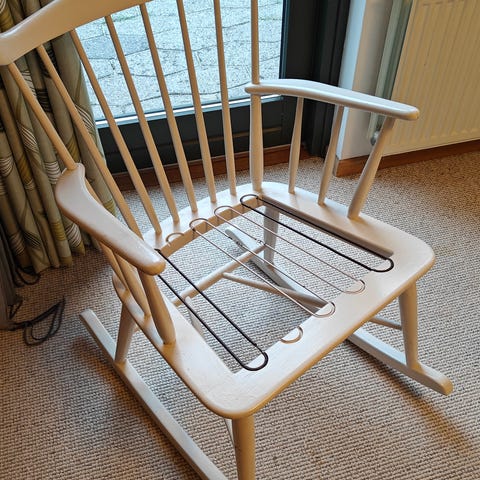 Traditionelt trægyngestol med vævet sæde