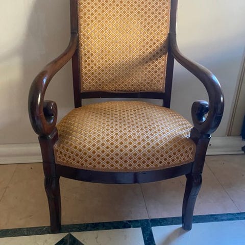 Denne smukke lænestol er et sandt blikfang, fremstillet med detaljeret håndværk og udstyret med imponerende udskårne løvekroner. Det elegante design viser en rig kombination af klassiske stilarter, med fin træbearbejdning, der gør stolen til et kunstværk. Løvekronerne, symboler på styrke og majestæt, tilføjer et unikt og majestætisk præg til stykket. Lænestolen tilbyder ikke kun komfort, men også et stykke historie til dit interiør. Perfekt til en samling af antikke møbler eller som et statement i et klassisk indrettet rum.
