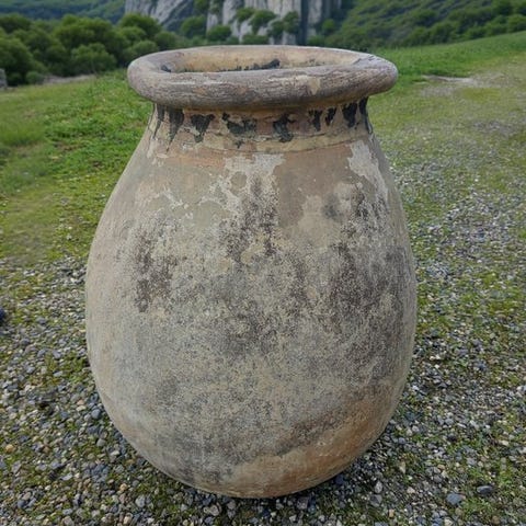 Gammel tyrkisk keramik med hank. Tidligere brugt til at opbevare vand, mælk eller vin.