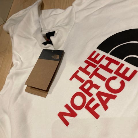 2 styk helt nye The North Face oversized T-shirts i let bomuld størrelse small. Hvid og grå. Oversized.