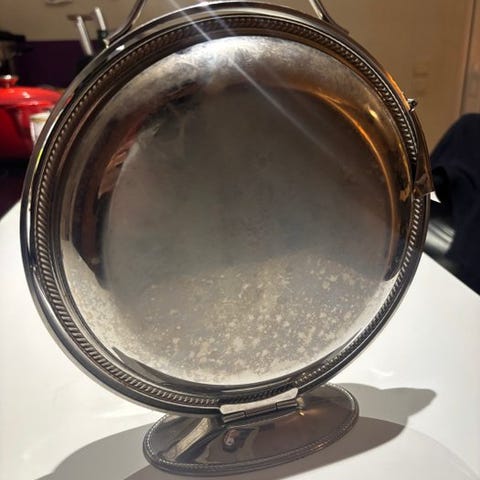 Model 5073, design Ettore Sottsass, har firmalogo på kanten af holderen. Vintage. Plat de menage. Salt og pebersæt.