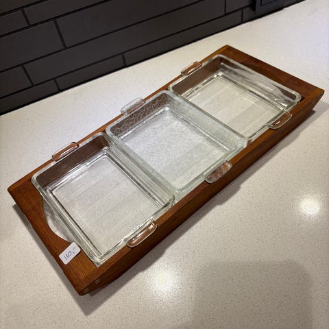 lågskål ø incl. hank 31cm, ø 20cm, h 6 cm u/låg. Tror hanken er limet på, så derfor er prisen 200kr., 5 underkopper pr. stk. 10kr., fra fra
