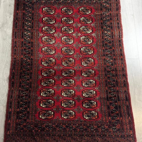Lad dig inspirere af det fine Bukhara-tæppe. Farverne harmonerer fremragende og er et perfekt stykke til dit hjem, som gerne vil vises frem i mange rum. Den anvendte uld er af høj kvalitet, og knuderne er yderst fine. Normalt finder man disse tæpper i farverne rød og brun. Tæppet blev importeret til EU i 2025.