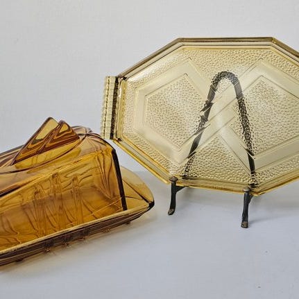 Royal Leerdam - Smørskål - Kaasstolp, Art Deco, Neerlandia servies 1939 - Glas