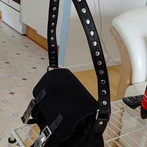Lille håndtaske i sort ruskind.