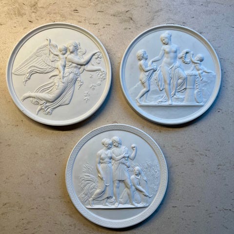 3 plaketter af bisquit med Thorvaldsens relieffer.