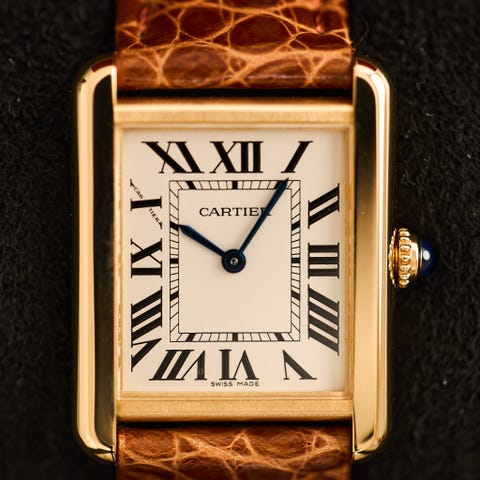 Et eksklusivt Cartier Tank Solo small i rødguld.