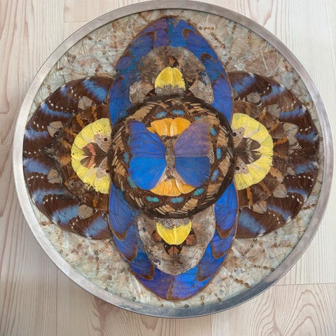 * Påfuglen som dekorativt element havde sin storhedstid i 1920'erne og -30'erne hvor Art Deco satte præg på både arkitektur og design. Påfuglens imponerende halefjer dannede inspiration for både tekstiler og tapeter, og fuglens fantastiske udtryk blev brugt skulpturelt i indretningen.