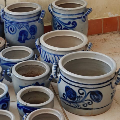 * 2 mini-krukker - i saltglaseret keramik