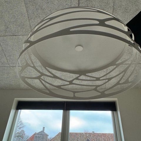 Kelly Dome pendlens laserskåret skærm giver lyset mulighed for at strømme ud, og give et flot lysspil i rummet. Pendlen giver et behageligt lys, og kan derfor med fordel placeres over spisebordet.