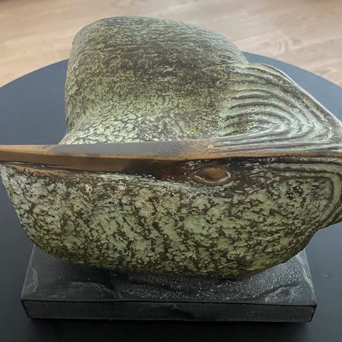 Stor flot granitskulptur af skibet Capella, lavet i Ferring i 2003.