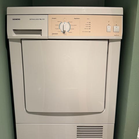 Siemens Kondens tørretumbler med frontbetjent dør. Tørretumbleren anvender kondensationsmetode til tørring af tøj. Enheden har et aftageligt kondensfilter til opsamling af vand fra tørringsprocessen.