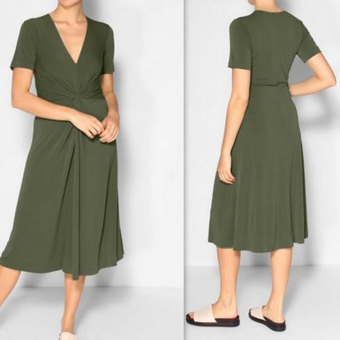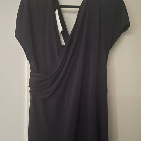 By Malene Birger kjole med flot knudedetalje som både kan bruges foran (og skjuler så en evt lille topmave) eller vendes bag.