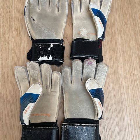 Select målmandshandsker og Adidas fodbold benskinner blå og sort