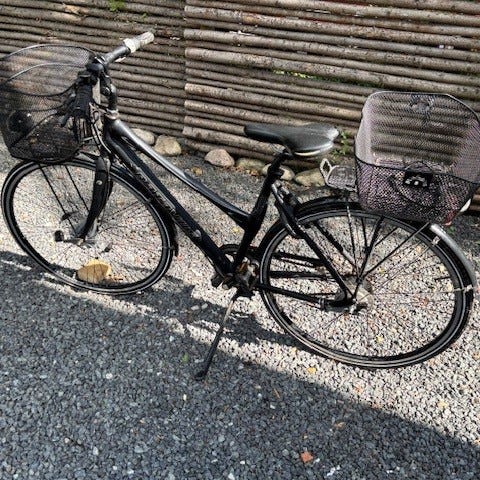 Tilbehør: skærme for og bag. Kædeskærm, bagagebærer, støtteben, kurv