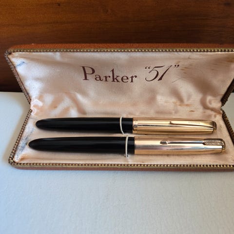 Den smukke og elegante designklassiker fyldepen Parker 51 I Sort I flot stand med lid mærker hvor hætte sættes på
