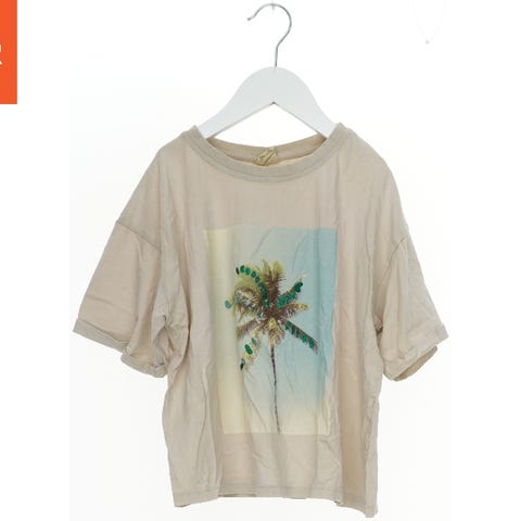 En grå T-shirt med korte ærmer. Designet er enkelt, og materialet ser ud til at være blødt. Mærket er 'Zara', og der er ingen synlige dekorationer eller mønstre.