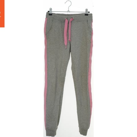 Disse sweatpants er lilla og er designet til børn. De har en elastisk talje med en grå snor til justering. Der er lommer på begge sider foran, og bukserne strækker sig til anklerne med elastikkant nederst.