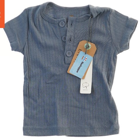 En kortærmet bodystocking i blå farve. Den har en stribet tekstur og fra mærket Enfant. Der er knapper foran for nem påklædning. Detaljer med mærkelapper inkluderet.
