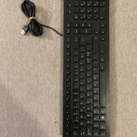 Dette er et Lenovo USB tastatur med dimensionerne 16,5x45 cm. Tastaturet har en standard layout med numerisk tastatur og funktionstaster. Tastaturet tilsluttes ved hjælp af et USB-kabel, hvilket gør det kompatibelt med de fleste computere. Det er ideelt til både kontorbrug og dagligdags opgaver.