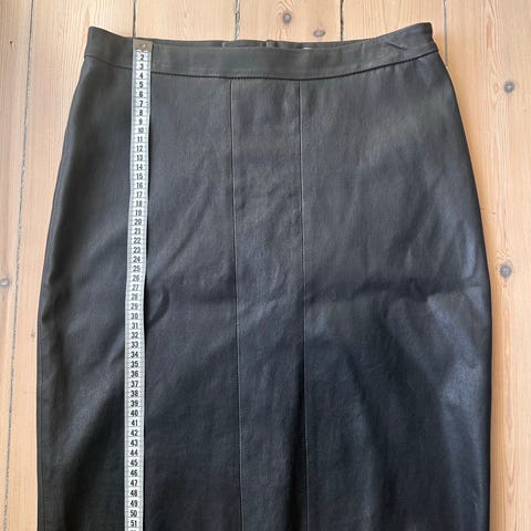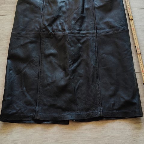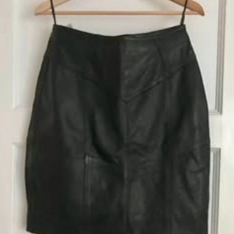 Flot sort nederdel i blødt sort skind med fine detaljer og syninger. Den er købt i secondhand vintage boutique i København for nogle år siden men har aldrig fået den brugt.