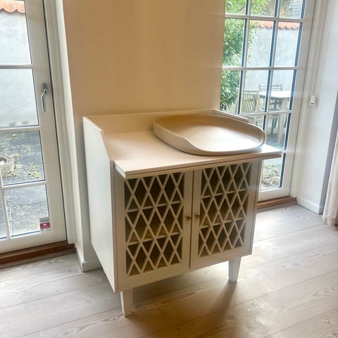Cam Cam møbler ii grå farve (to nuancer). Passer rigtig godt til børneværelset. Sæt bestående af bord med bænke og bogreol til væg samt bogreo/opbevaring til gulv. Bordet har en funktionel overflade og et design, der passer til børneværelser.