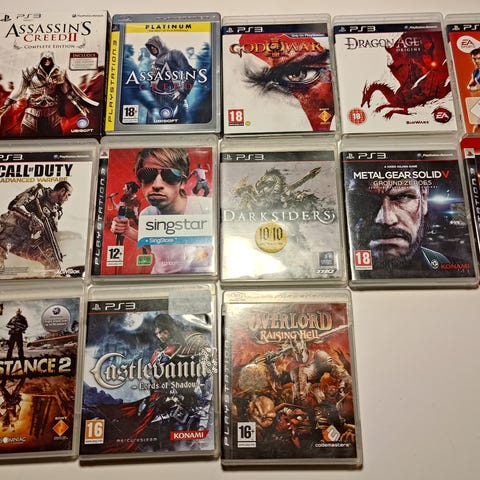 Har denne mindre samling af spil og konsoller. Har aldrig rigtig fået det brugt, eller testet af. Har ikke et ældre tv så kan ikke rigtig teste dem. De tænder fint når jeg sætter strøm til. Ps1 kan åben knappen nogle gange sætte sig fast. Psp er en model 2004 slim/lite som har fået nyt batteri og en ny oplader til. Der medfølger os en ps3 med 4 controller hvor kun en virker, ved ikke om de andre mangler strøm eller bare ikke virker mere. Ps3 har ikke indlæse spil, men tænder fint og kommer frem på tvet.