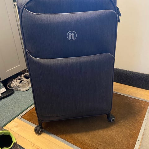 Det er en meget lækker sort letvægtskuffert som har fået 4 nye hjul så den kører som ny og er i det hele taget i rigtig pæn stand.