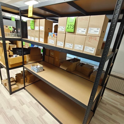 Reoler, 4 stk + 2 halve. Reoler med MDF hylder. Reolerne er 2 delt og måler i alt 160 b x 59 d x 180 høj. Der er i gennemsnit ca 6 hylder og 2 gavle til hver. Bemærk kan to deles. Uden indhold. I pæn stand. Fra lukket webshop.