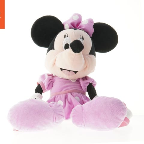 Dette er et tøjdyr, der forestiller Minnie Mouse. Det er fremstillet i blødt materiale og har en størrelse på 68x30 cm. Minnie Mouse bærer en lyserød kjole med hvide prikker og en matchende lyserød sløjfe på hovedet. Dens hænder er hvide, og dens fødder er også lyserøde med lille sløjfer. Legetøjet ser ud til at være velholdt og egnet for børn eller som en samlerobjekt.
