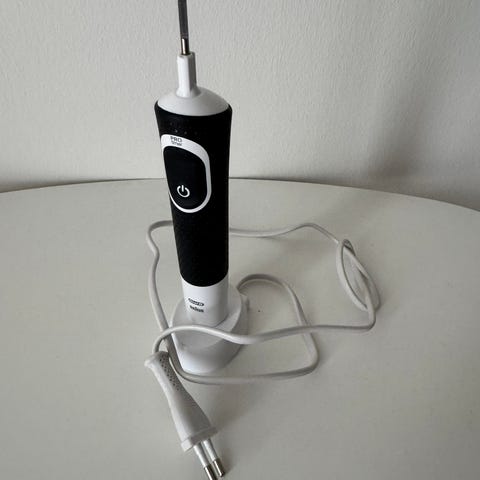 Dette er en elektrisk tandrenser fra Flosser, der kommer i en blå emballage. Den har en længde på 24,5 cm. Produktet har flere indstillinger såsom puls, blød, normal samt en tænd/sluk-knap. Udover tandrenseren indeholder pakken også forskellige mundpleje-relaterede tilbehør, som opbevares i en gennemsigtig plastikkasse.