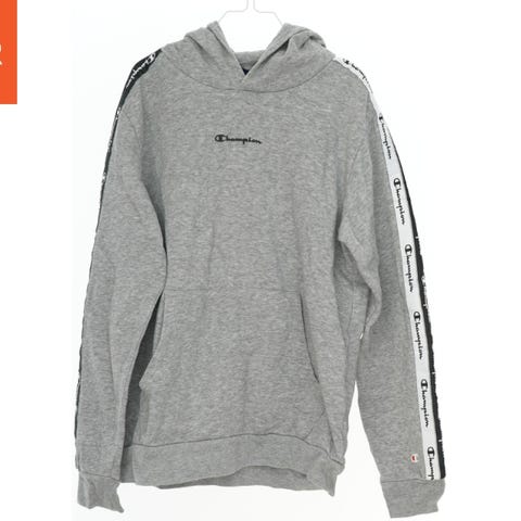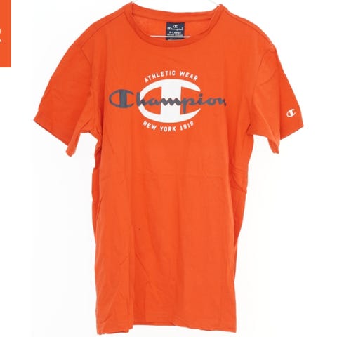 Hvid Champion T-shirt med kortærmet design. Forsiden har et Champion logo i gråt skrift. T-shirten er fremstillet i bomuld. Der er ingen synlig størrelse på billederne.