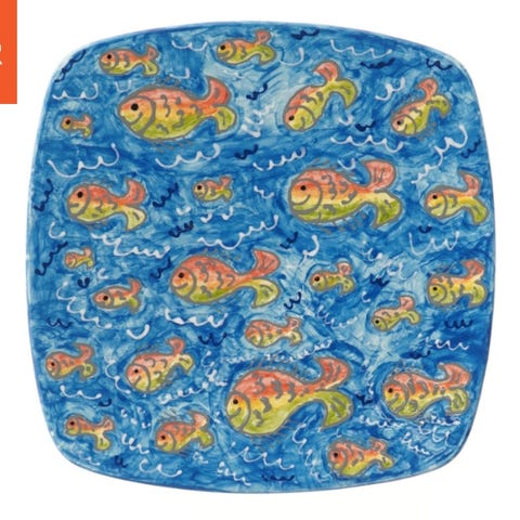 Dekorativt porcelain tallerken med skibsmotiv (str. Ø 31 cm)