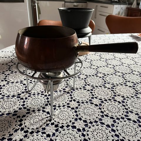 Kobber fondue gryde med låg og varmer (str. Ø. 15,5 cm)