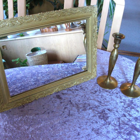 Dekorative spejlrammer af messing med lyssestage (str. 28,5x16,5 cm)