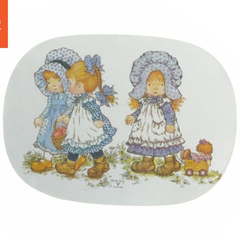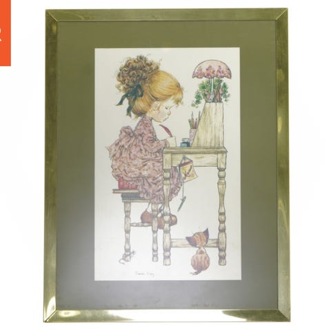 Dette er et ovalt glasbillede med en illustration af en pige af Sarah Kay. Billedet er indrammet af en dekorativ kant med blomstermotiver og har en kæde til ophængning. Størrelsen på billedet er 28x22 cm.