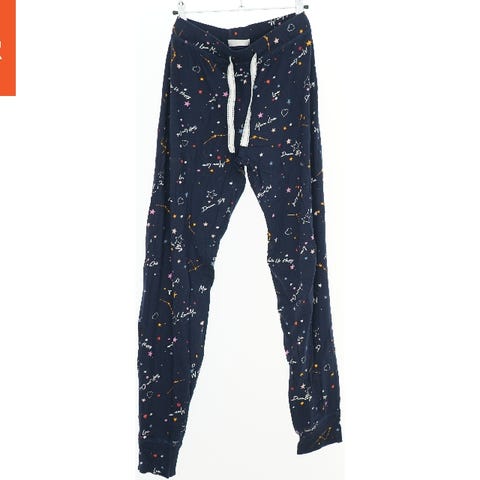 Dette pyjamassæt består af en langærmet bluse og lange bukser. Begge dele har et print med bjørne og sneklædte træer på en dyb grøn baggrund. Bukserne har elastik i taljen samt en snor og ribkanter ved anklerne.