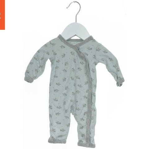 Babysæt med grå heldragt og mønstret sparkedragt fra Fixoni (str. 56)