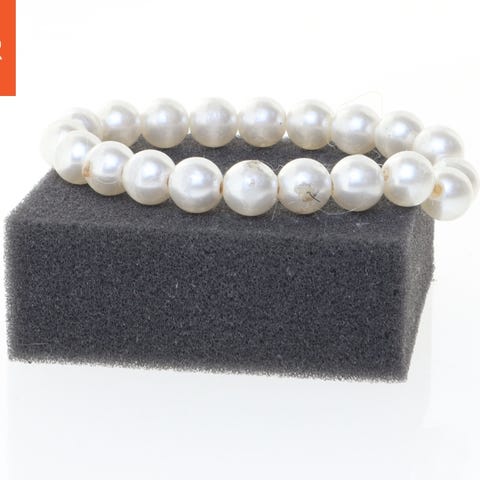 En elegant perlekæde lavet af hvide perler med en længde på 90 cm. Den kan bæres som et smykke og tilføje et sofistikeret udseende til enhver påklædning.