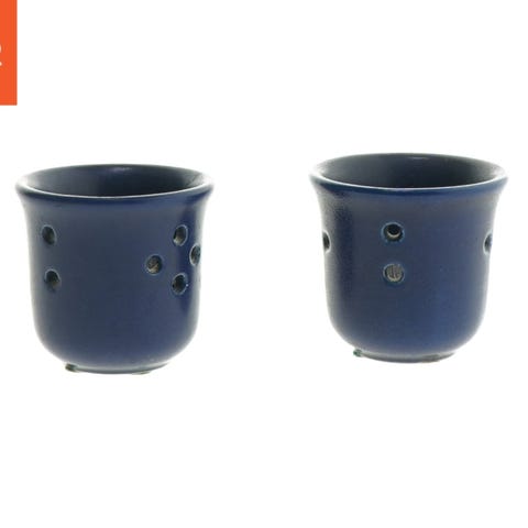 Blå Keramik lysestage (str. Ø. 7,5 cm. længde. 15 cm)