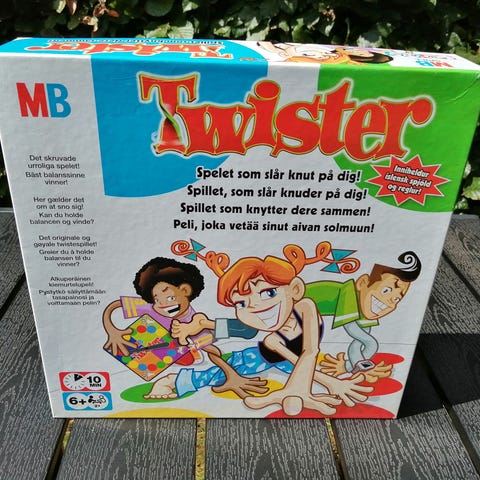 Twister er et klassisk brætspil der kombinerer strategi og fysisk motorik, hvor spillere skal placere deres hænder og fødder på farvede cirkler på en stor plastikmåtte. Der medfølger en drejeskive som viser hvilken farve og kropsdel der skal flyttes, hvilket garanterer sjov og udfordrende kropsbevægelser. Spillet kan spilles af børn fra 6 år og op, og det er ideelt til familiefester og sammenkomster. Produktet er i hård pap og plastik, og kan spilles af 2 eller flere spillere.