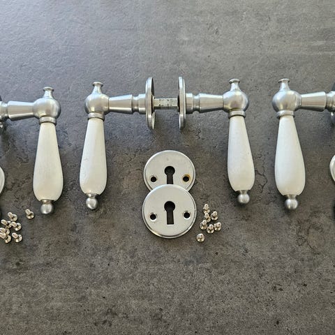 Dørgreb i en guld farve med et riflet mønster på det håndtag, der skal gribes om. Grebet er cylinderformet med en base der fastgøres til døren. Størrelsen på dørgrebet er 5,5x4 cm. Enheden er designet til at blive monteret på en dør med en enkelt skrue, som kan ses på bagsiden af grebet.