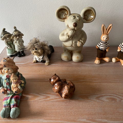 To keramiske figurer, der forestiller vise mænd. Den ene figur er klædt i grønne klæder, mens den anden er klædt i gule klæder. De står begge med genstande i hænderne, hvoraf den ene holder en bog og den anden en skål. Figurerne står på en rektangulær sort base. Højden på figurerne er 9 cm.