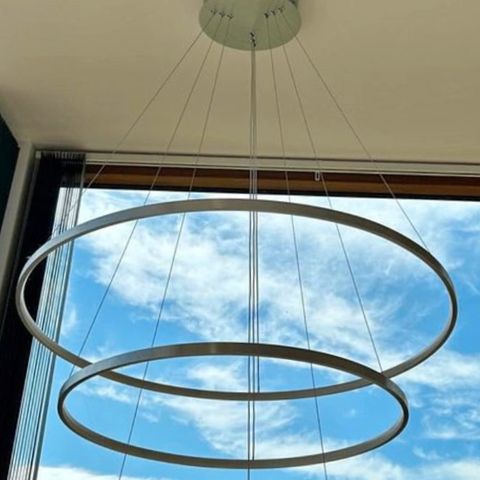 Flot pendel lampe i guld. Lampen er dæmpbar og har 3 forskellige farver/nuancer.